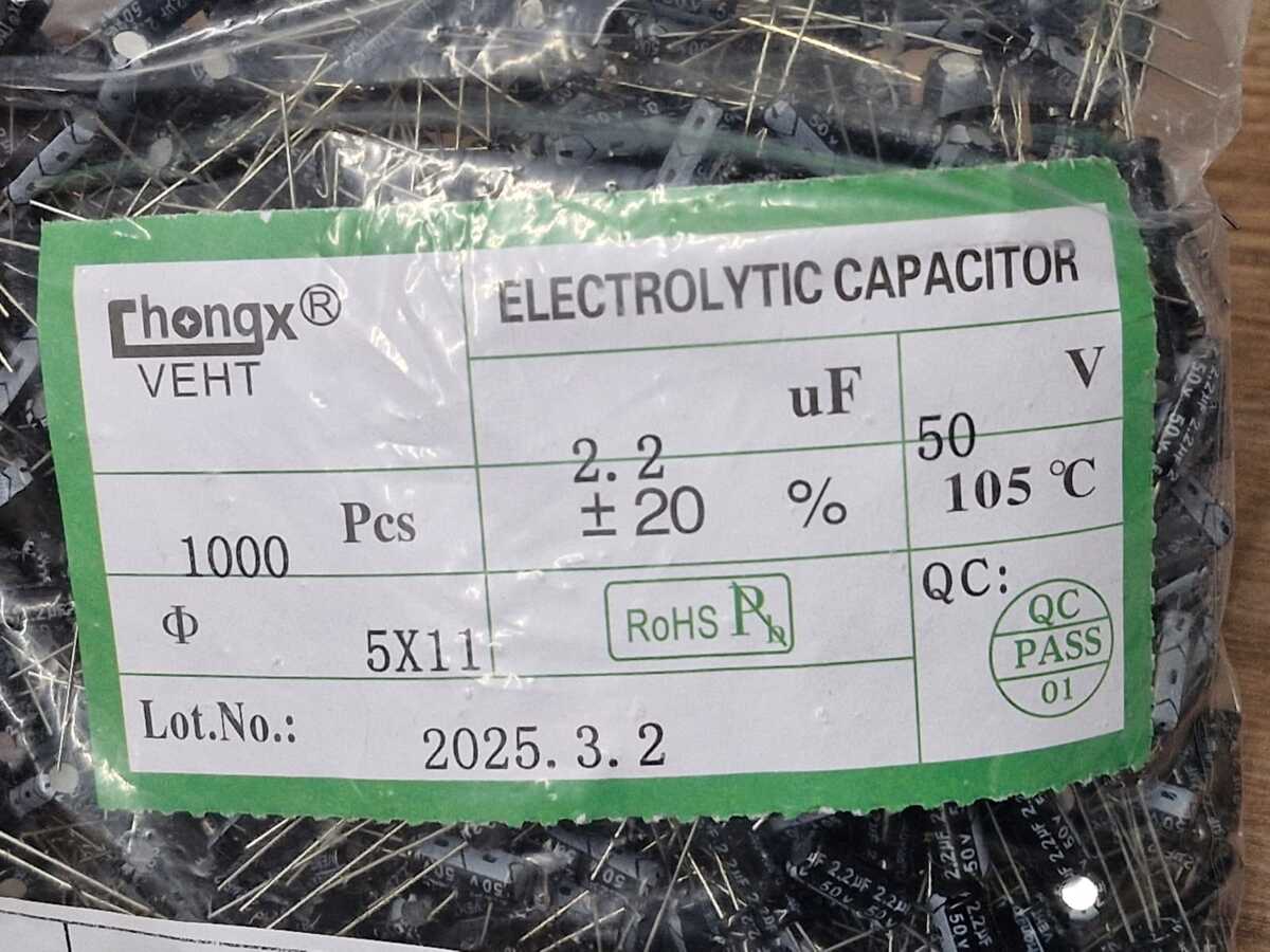 1000x Capacitor Eletrolitico Rd 2,2uf 50v 20% 105c 5x11mm