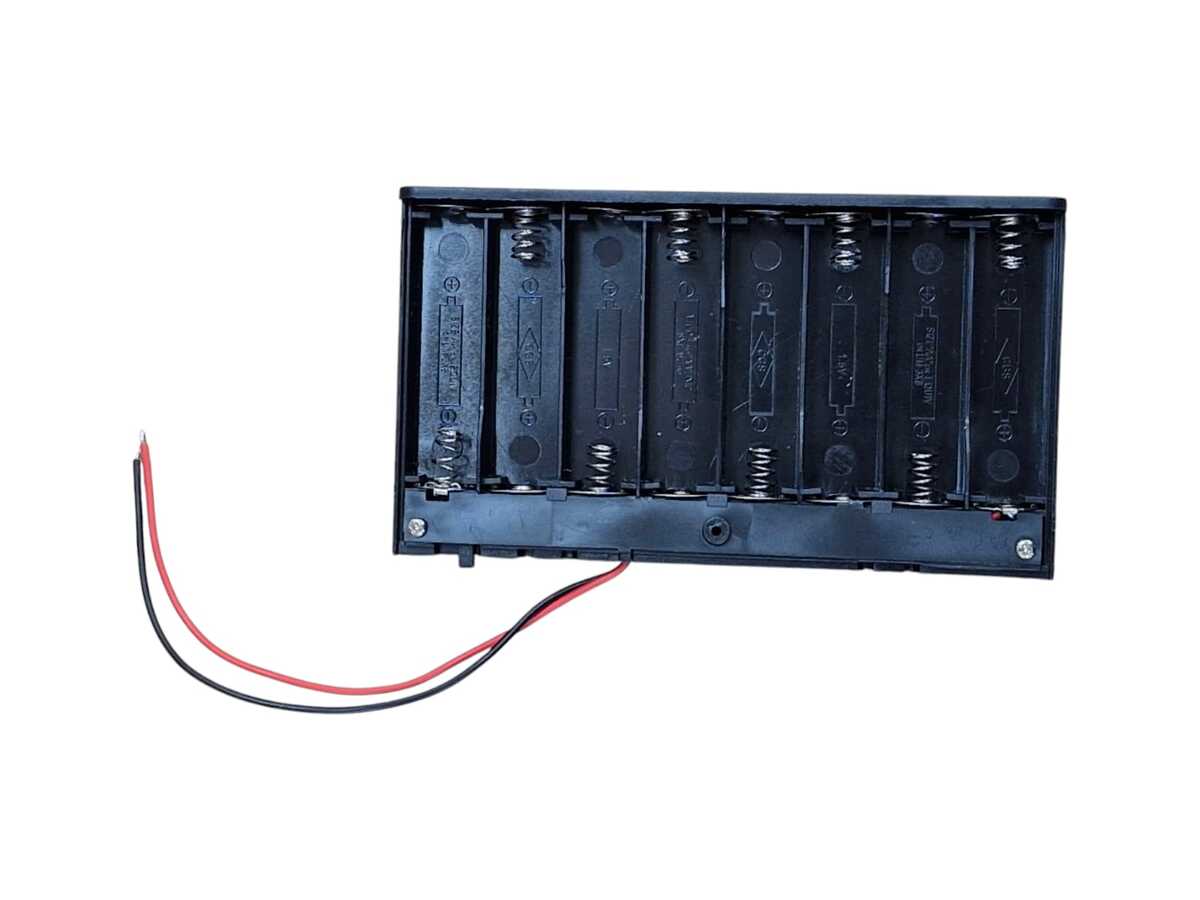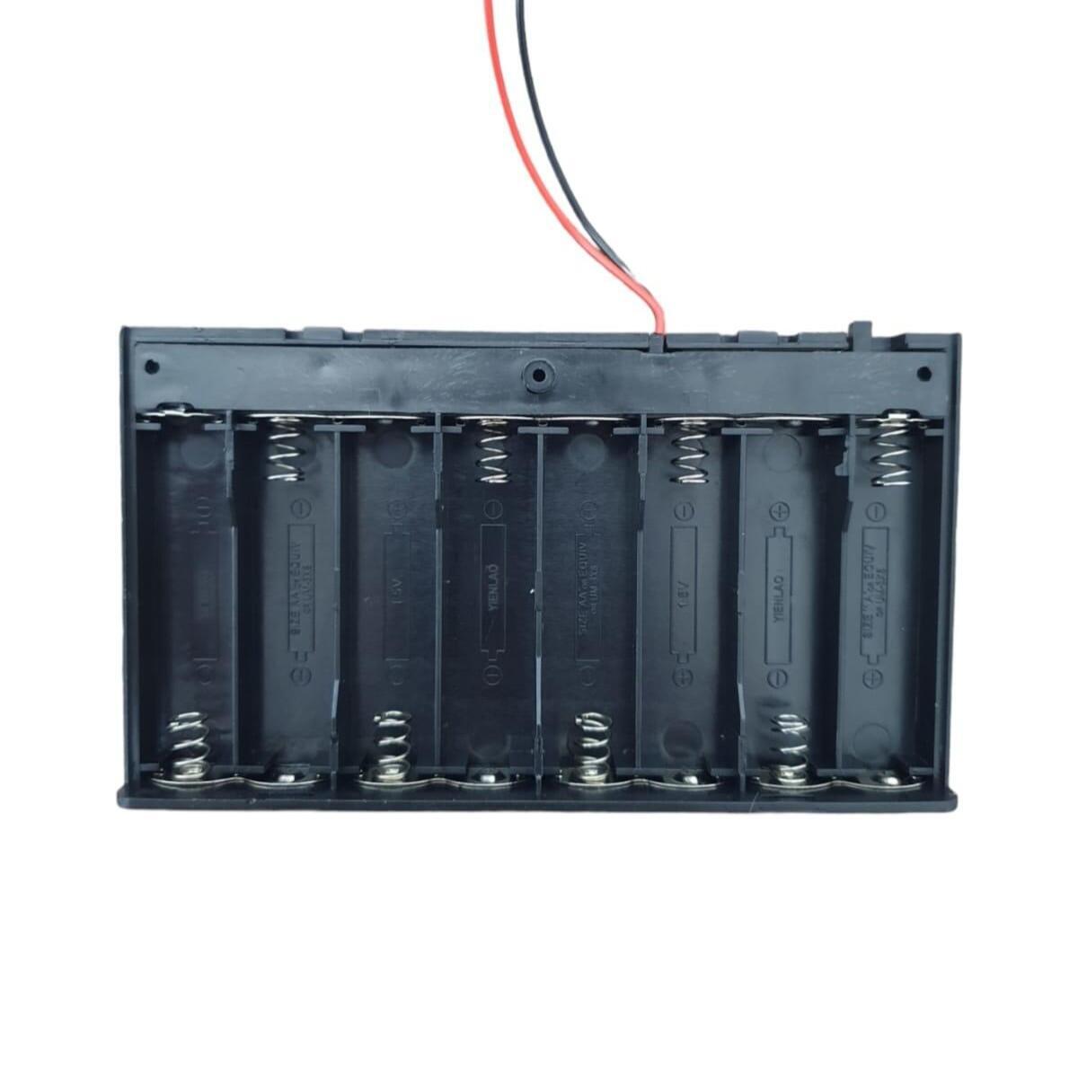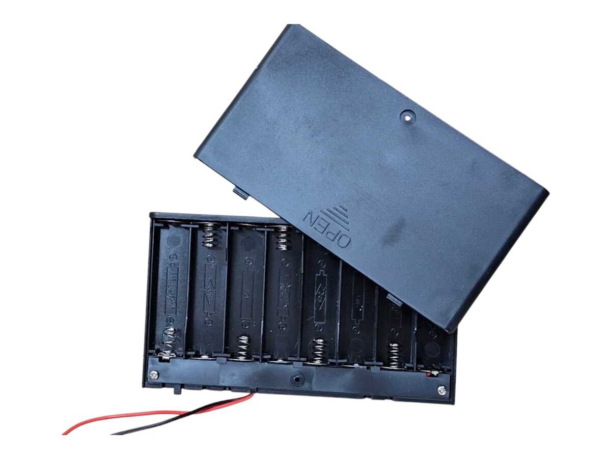Caixa Suporte Bateria Aa 8 Vias C/ Tampa E Chave foi desenvolvido para facilitar a alimentação externa de dispositivos que necessitam até 8 pilhas AA para funcionamento, além disso este suporte conta com uma chave liga/desliga.