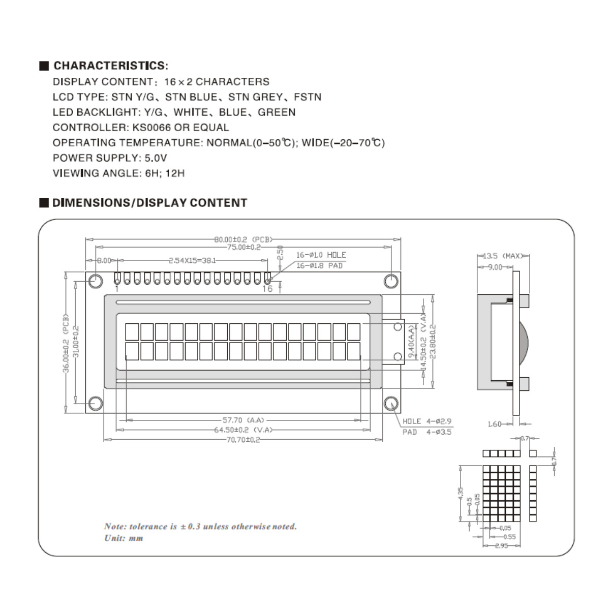 Ficha Técnica Display LCD JHD659-162A