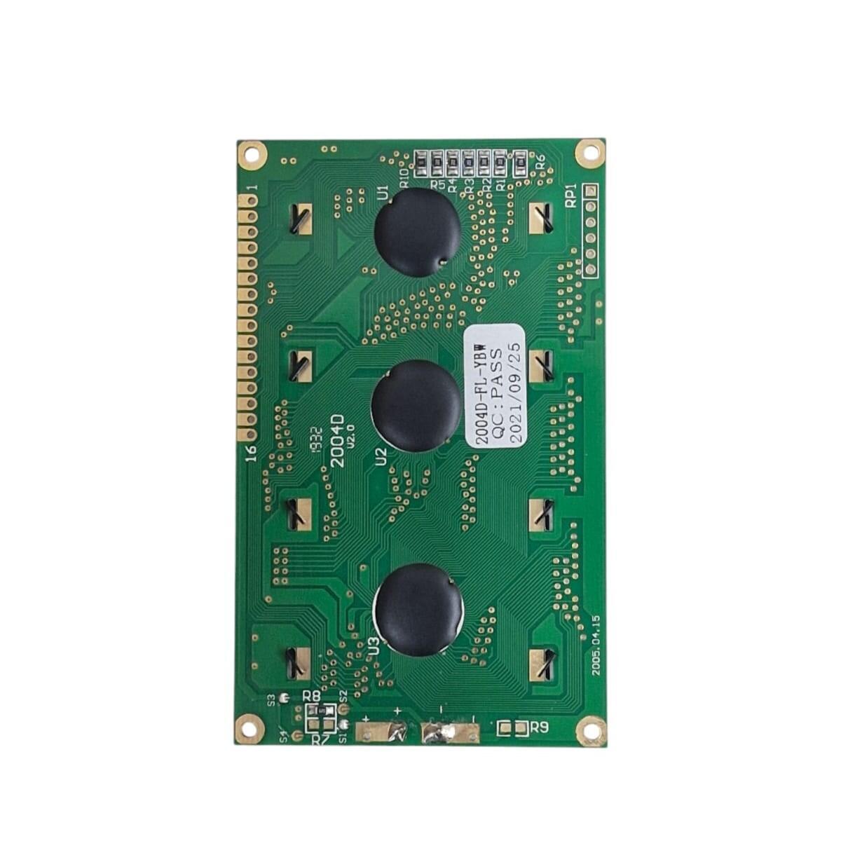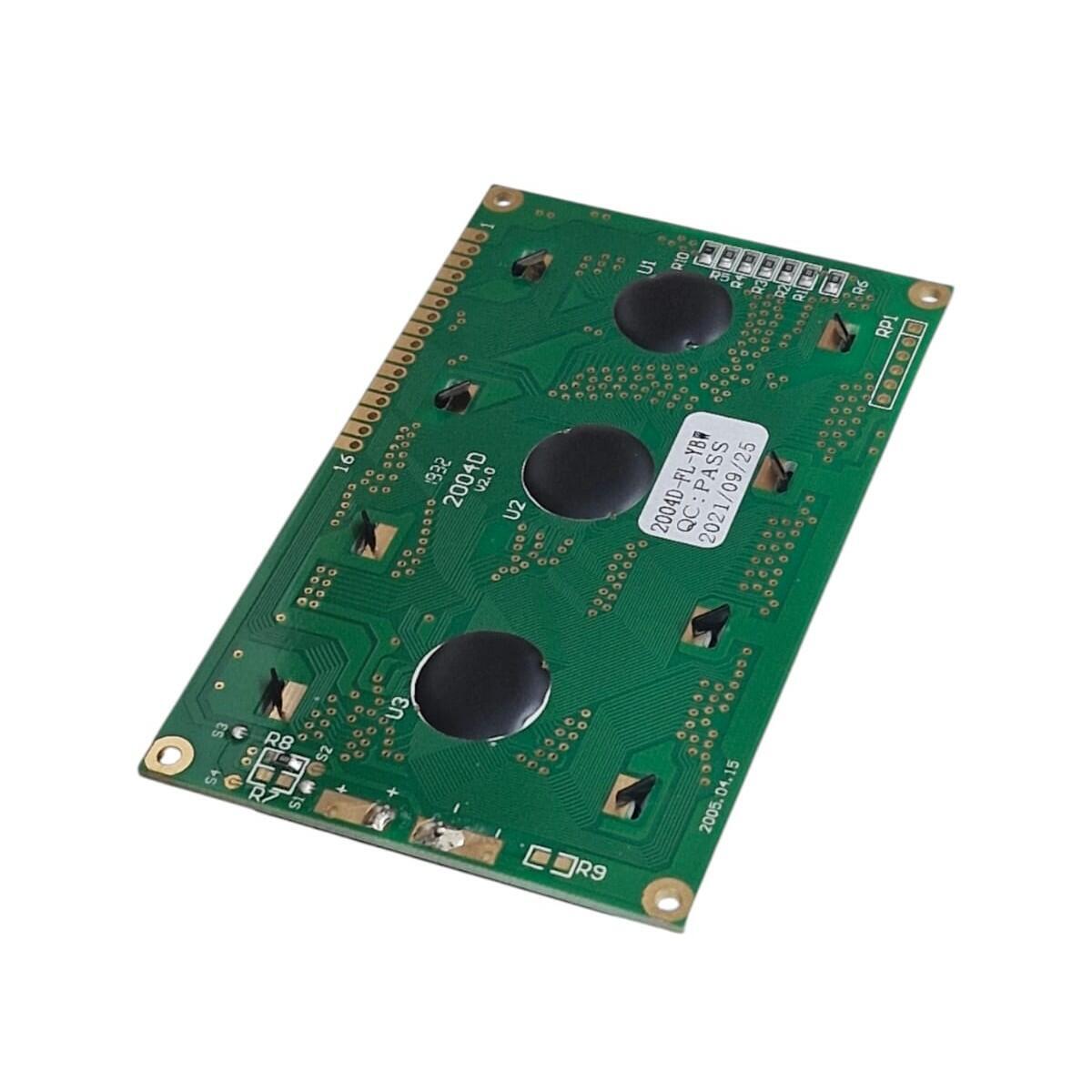 Display LCD 20×4 MGD2004DFL Backlight Verde é um módulo de display alfanumérico LCD de 20 colunas por 4 linhas com luz de fundo verde, ideal para mostrar texto e informações em projetos eletrônicos. Ele funciona com aproximadamente 5 V, é compatível com a maioria dos microcontroladores como Arduino, PIC e similares.
