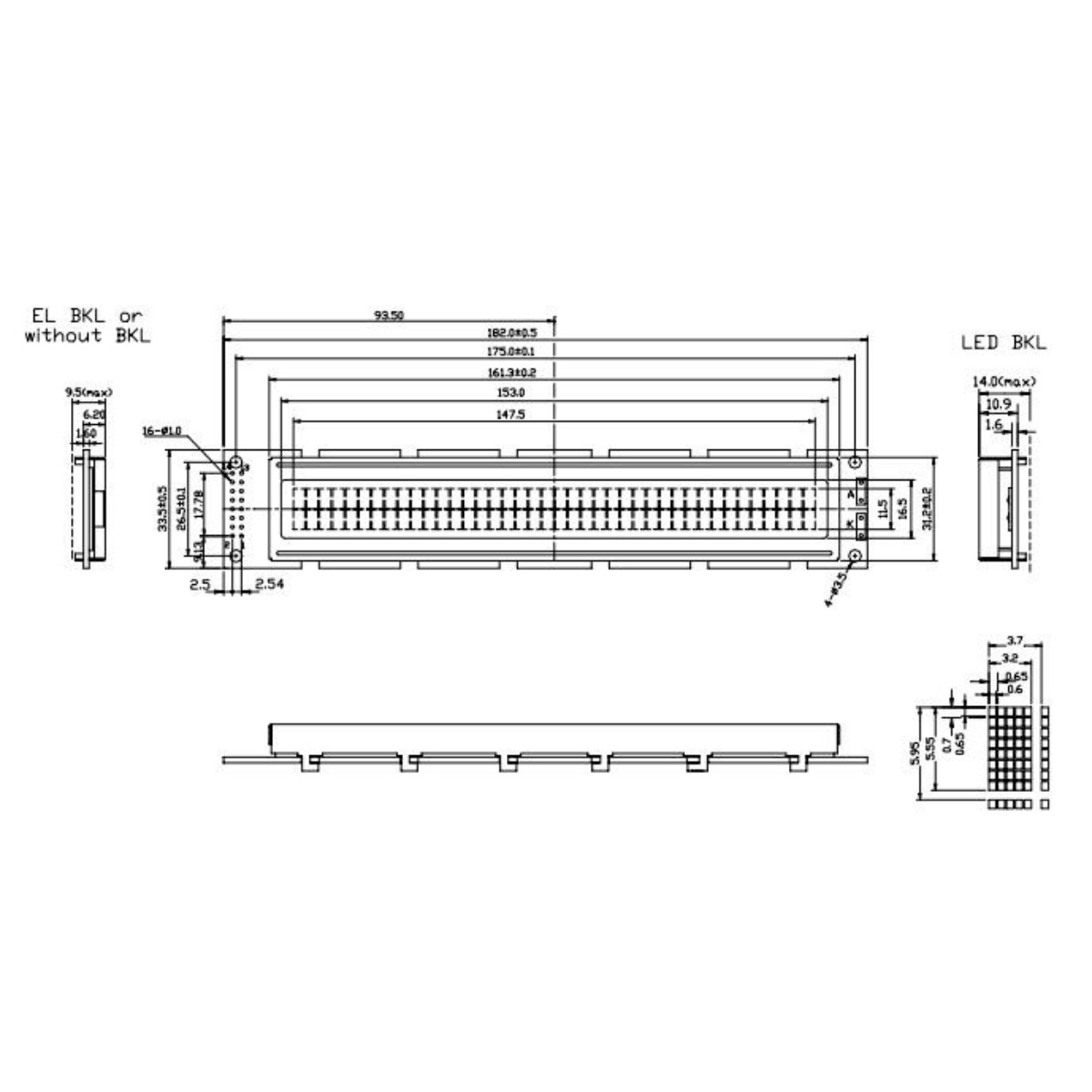 – Modulo: 181 (C) X 34 (L) X 1.50 (A) mm
