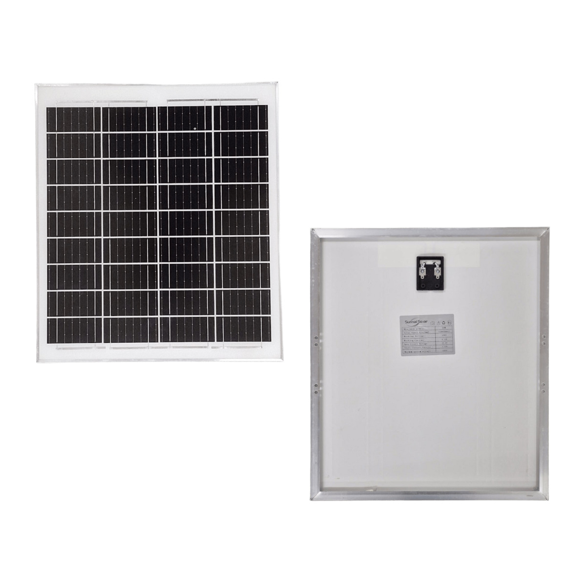 Painéis/placas de energia solar fotovoltaica de 20 W e 18 V ideais para captar a energia do sol e gerar eletricidade em pequenos sistemas off-grid e aplicações de baixa a média potência; cada módulo solar é compacto, resistente e suporta tensão máxima do sistema de 1000 V, oferecendo desempenho eficiente em condições normais de uso, sendo perfeito para alimentar projetos solares, iluminação, bombas pequenas, carregamento de baterias e outras aplicações em locais sem rede elétrica.